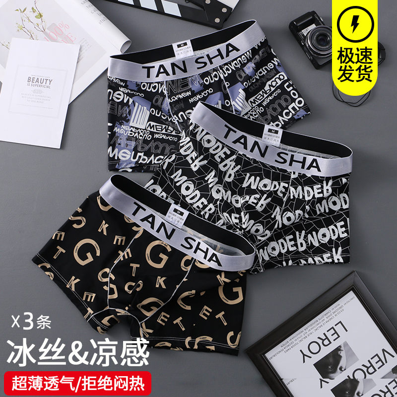 【产品名称:男士内裤冰丝凉感透气抗菌夏季薄款裤头男款潮流性感男生四角短裤】