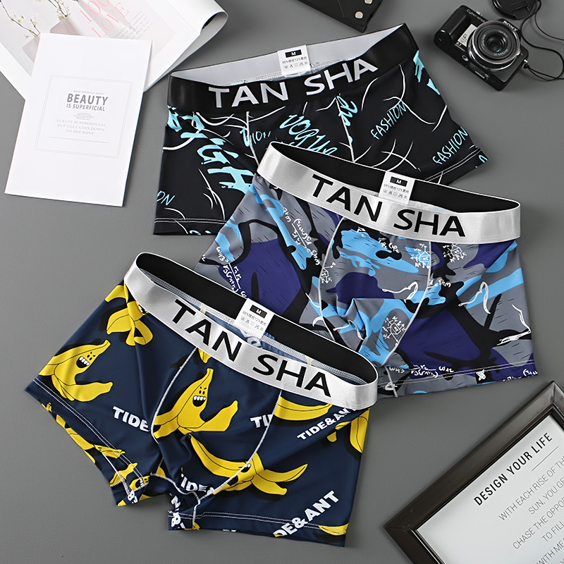 【产品名称:冰丝无痕男士内裤男平角裤薄款透气夏季性感潮牌男生四角短裤裤衩】
