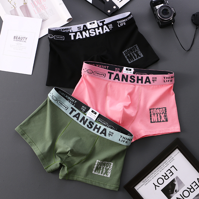 【产品名称:男士内裤男款平角裤纯棉全棉抗菌运动粉色性感青年男生四角短裤头】
