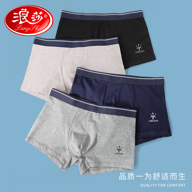 【产品名称:浪莎男士内裤男纯棉夏季薄款男生平角运动短裤男式青少年四角裤衩】