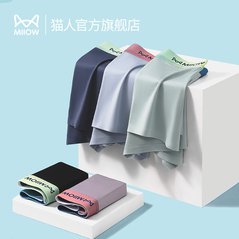 【产品名称:猫人莫代尔男士内裤桑蚕丝抑菌裆透气男生大码粉色平角短裤衩F3】