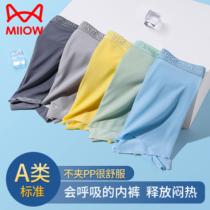 【产品名称:猫人儿童内裤夏季薄款男童平角裤冰丝透气无痕裤头中大童抗菌短裤】