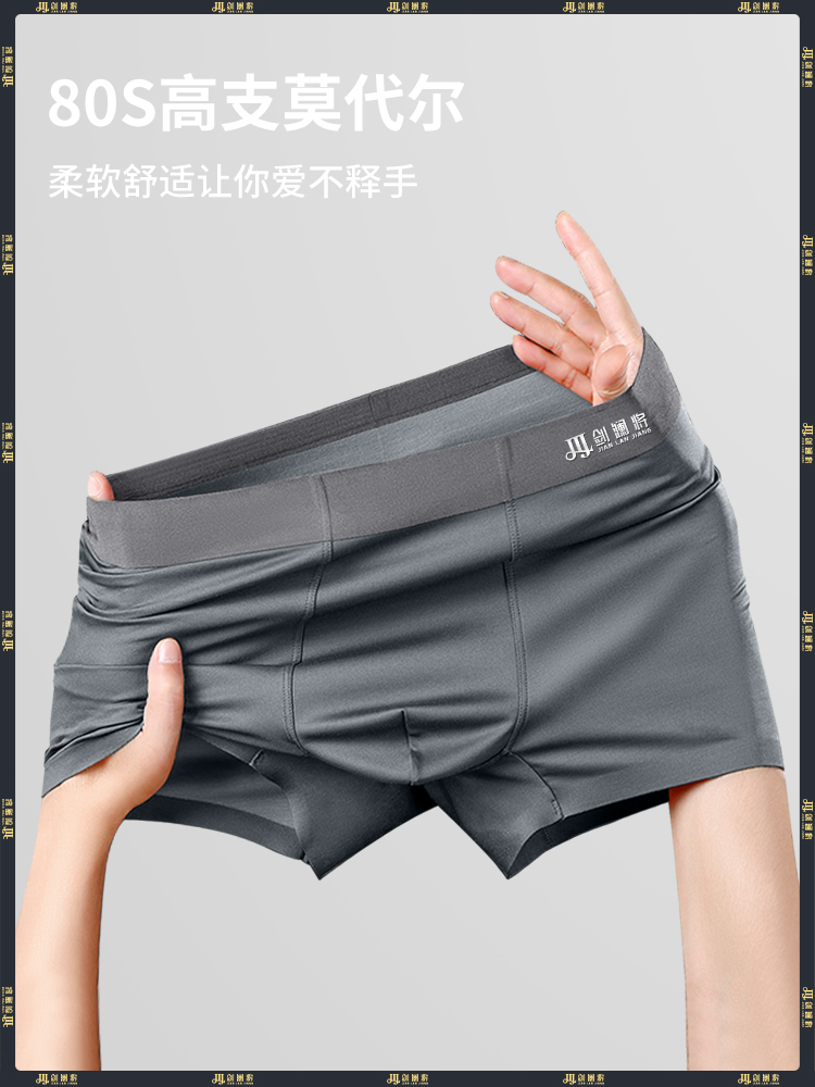 【产品名称:礼盒装莫代尔无痕男士内裤男纯棉抗菌透气四角裤夏季薄款中腰短裤】