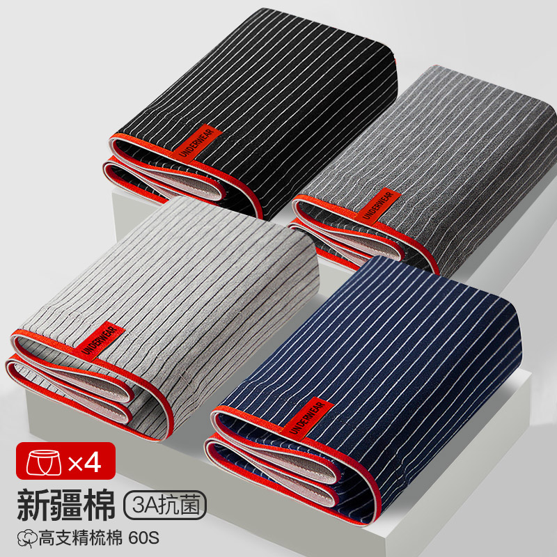 【产品名称:六衿男士内裤纯棉透气平角裤大码宽松男生四角裤抗菌中腰短裤头】