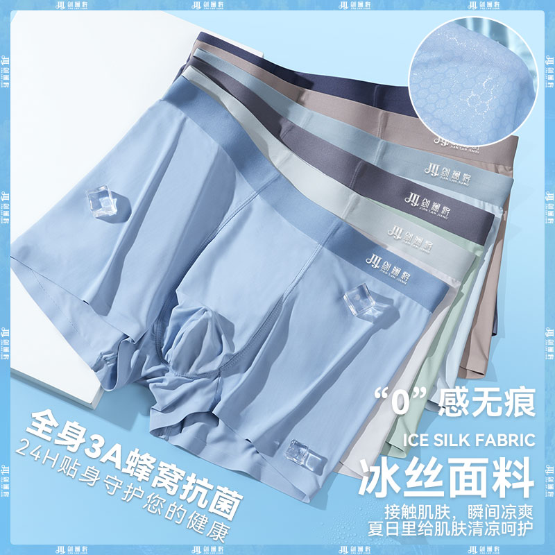 【产品名称:男士内裤男冰丝无痕四角裤夏季薄款石墨烯抗菌透气平角短裤衩大码】