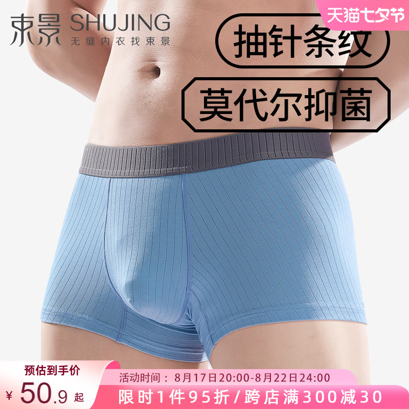 【产品名称:束景男士内裤莫代尔夏季薄款平角裤抑菌裆宽松透气男生四角短裤头】