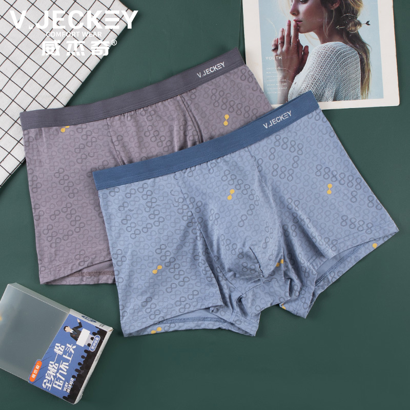 【产品名称:V﹒JECKEY/威杰奇男士内裤平角裤简约商务印花抗菌中腰弹力裤衩男】