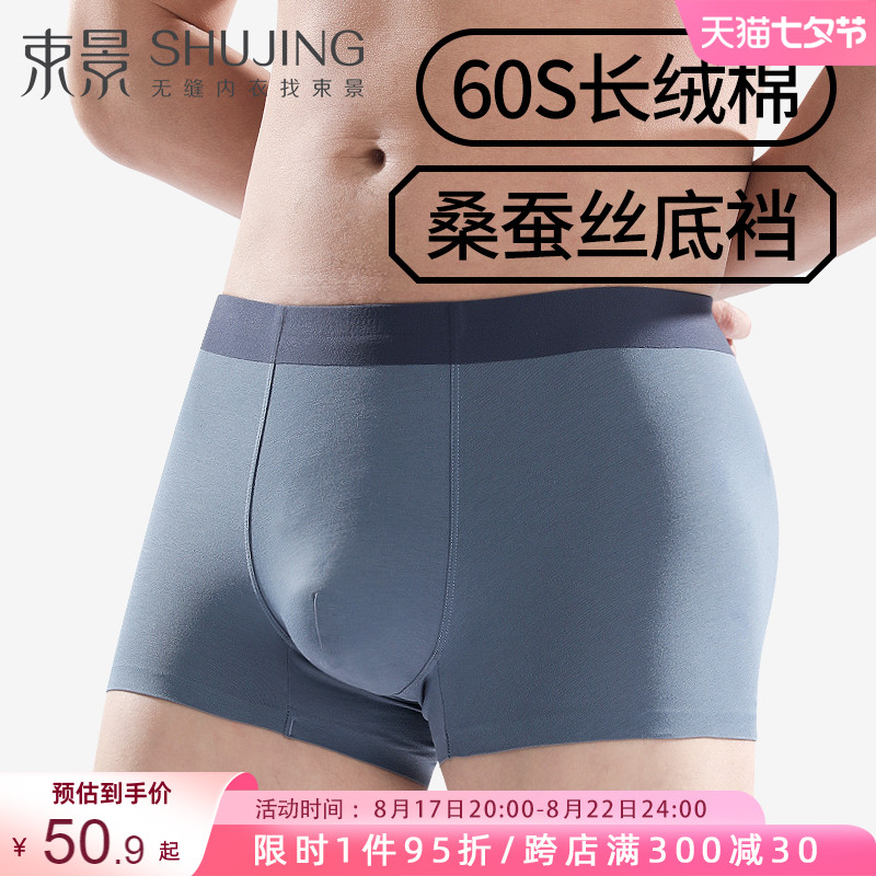 【产品名称:束景男士内裤新疆长绒棉蚕丝抗菌底裆无痕透气青年大码平角短裤】