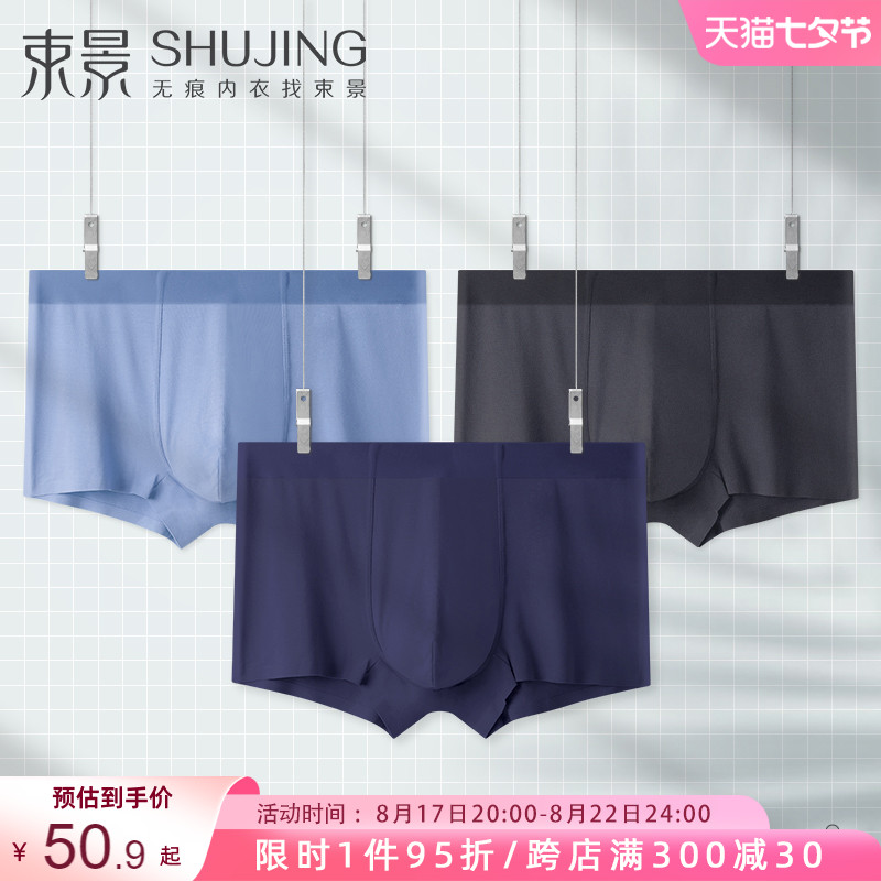 【产品名称:束景男士内裤平角裤宽松透气棉男生青少年无痕潮流四角短裤头】