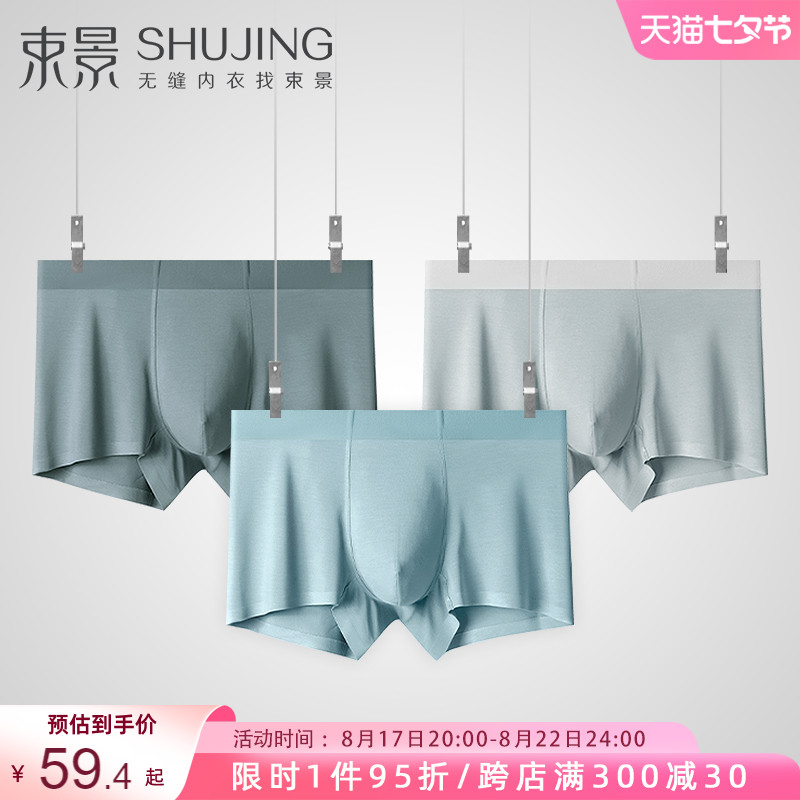 【产品名称:束景男士内裤莫代尔平角无痕夏季透气舒适抑菌宽松大码男式短裤】