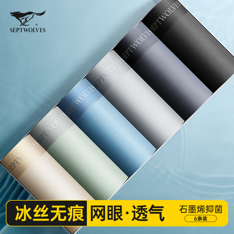 【产品名称:七匹狼冰丝男士内裤男生凉感无痕平角男式夏季薄款纯棉裆四角短裤】