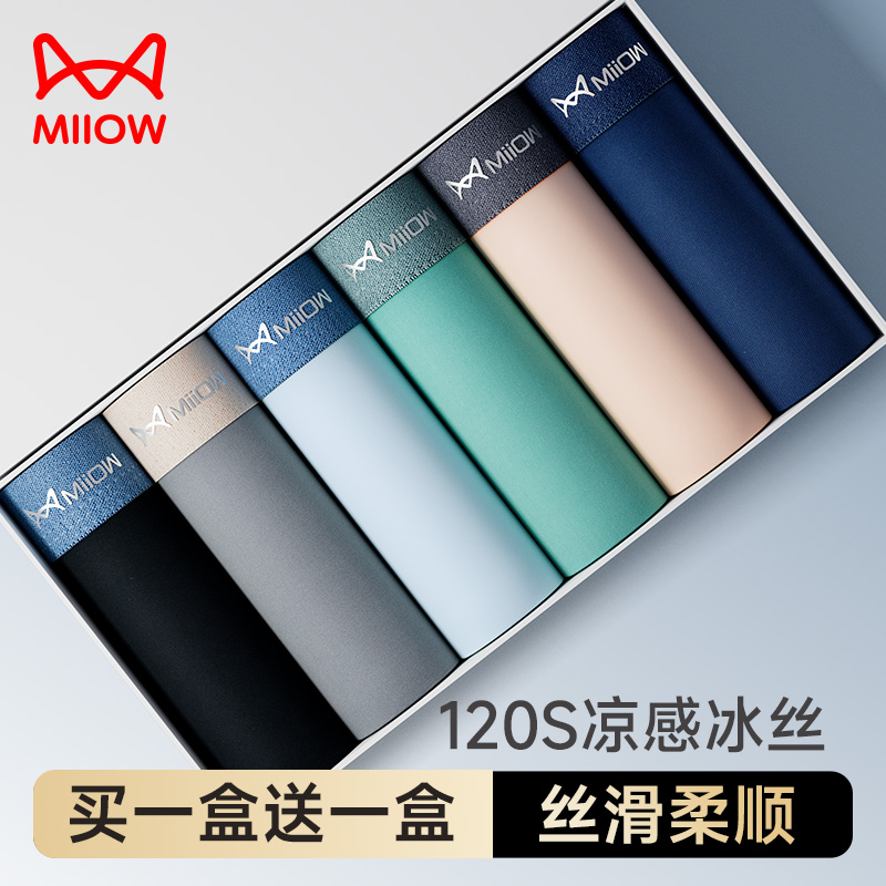【产品名称:猫人男士内裤无痕冰丝抗菌裆夏季薄款凉感男生半透明四角平角短裤】