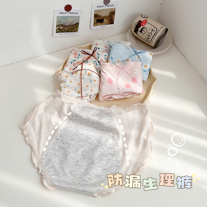 【产品名称:夏季薄款月经期防漏生理期内裤女士中高腰防侧漏姨妈裤少女安心裤】