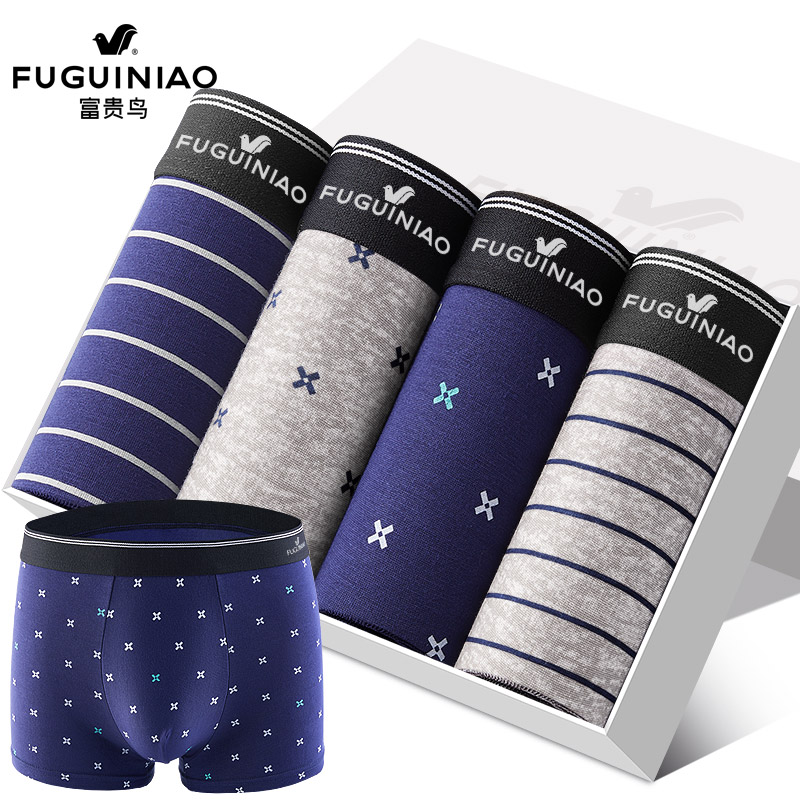 【产品名称:富贵鸟男士内裤高弹抗菌四角裤条纹透气裤衩短裤男生平角裤头男款】