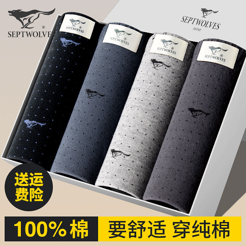 【产品名称:七匹狼男士内裤纯棉男生男款平角裤抗菌裤衩大码男式四角短裤冬季】
