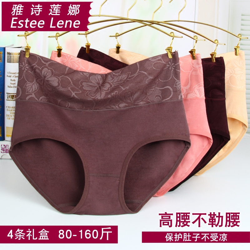 【产品名称:4条装 莫代尔三角内裤女士中年妈妈中高腰大码胖mm比纯棉全棉柔】