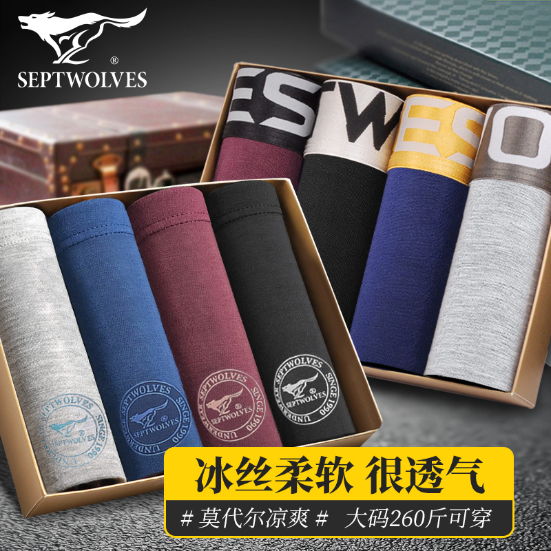 【产品名称:七匹狼男士内裤冰丝莫代尔夏季超薄款四角短裤头男生大码肉土透气】