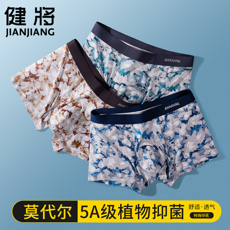 【产品名称:健将男士内裤男莫代尔平角纯棉裆抗菌四角短裤冰丝裤衩头透气潮流】