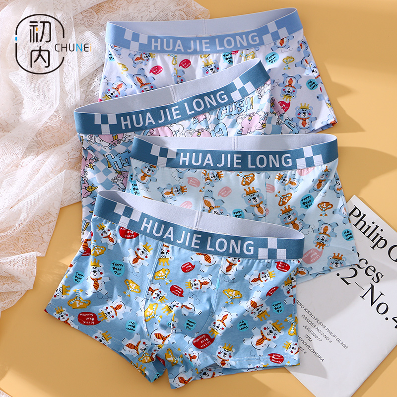 【产品名称:初内纯棉印花男士内裤男平角裤男生四角裤运动男式裤头男款裤衩潮】