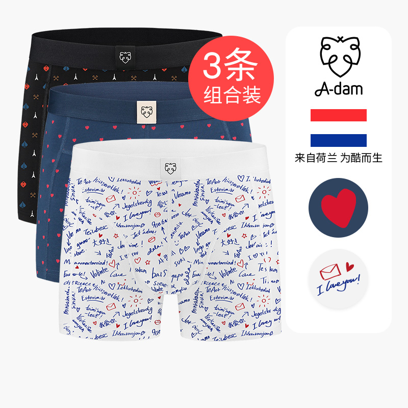 【产品名称:【3条装】Adam荷兰潮牌男士内裤纯棉平角四角夏季薄款透气短裤】