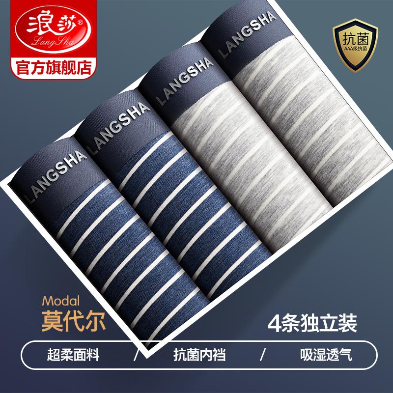 【产品名称:浪莎男士内裤莫代尔抗菌裆透气四角冰丝凉感秋季薄款男生平角裤衩】