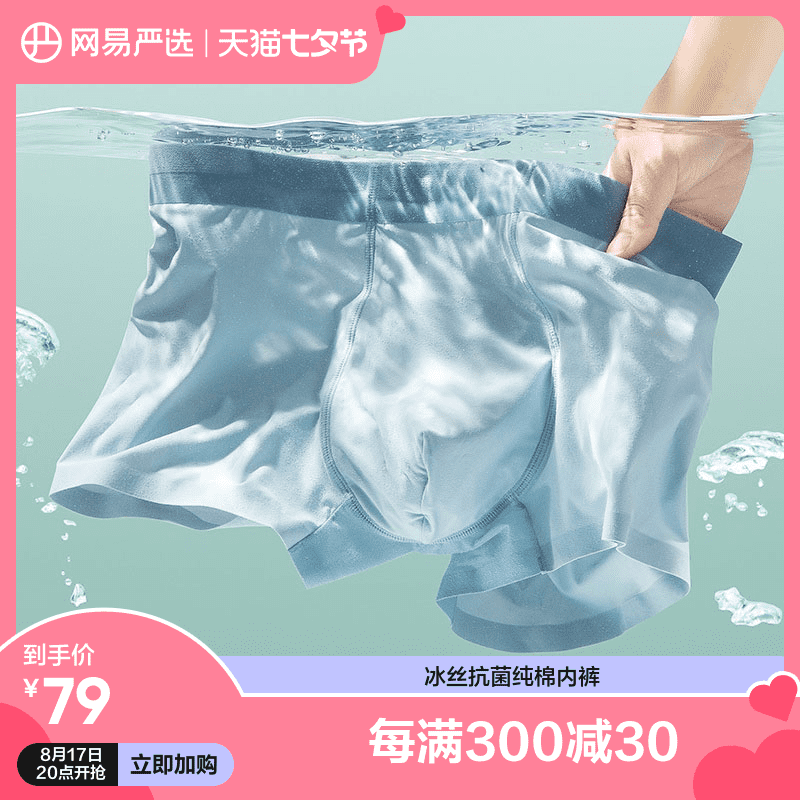 网易严选冰丝男士内裤纯棉档抗菌夏季凉感透气舒适平角内裤男裤头