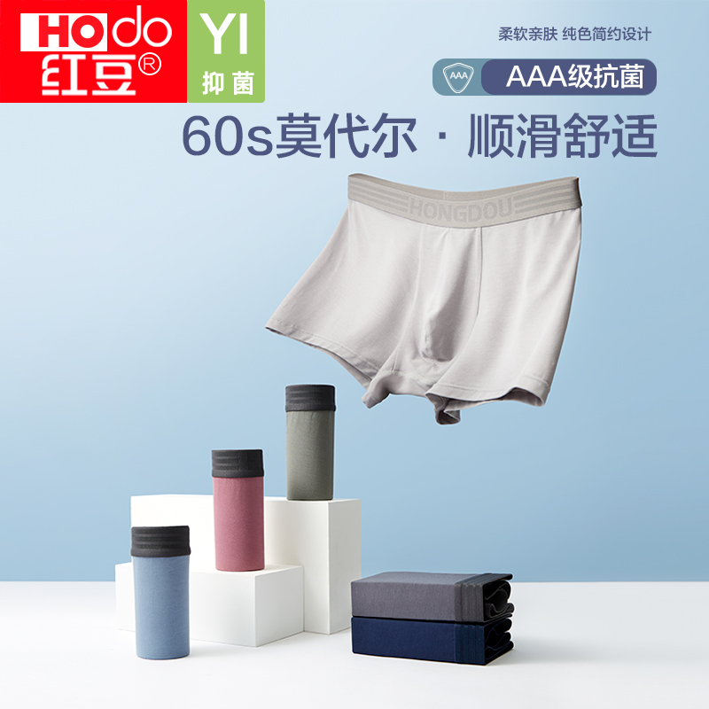 【产品名称:红豆男士内裤60S莫代尔抗菌夏季薄款短裤四角裤平角宽松舒适透气】