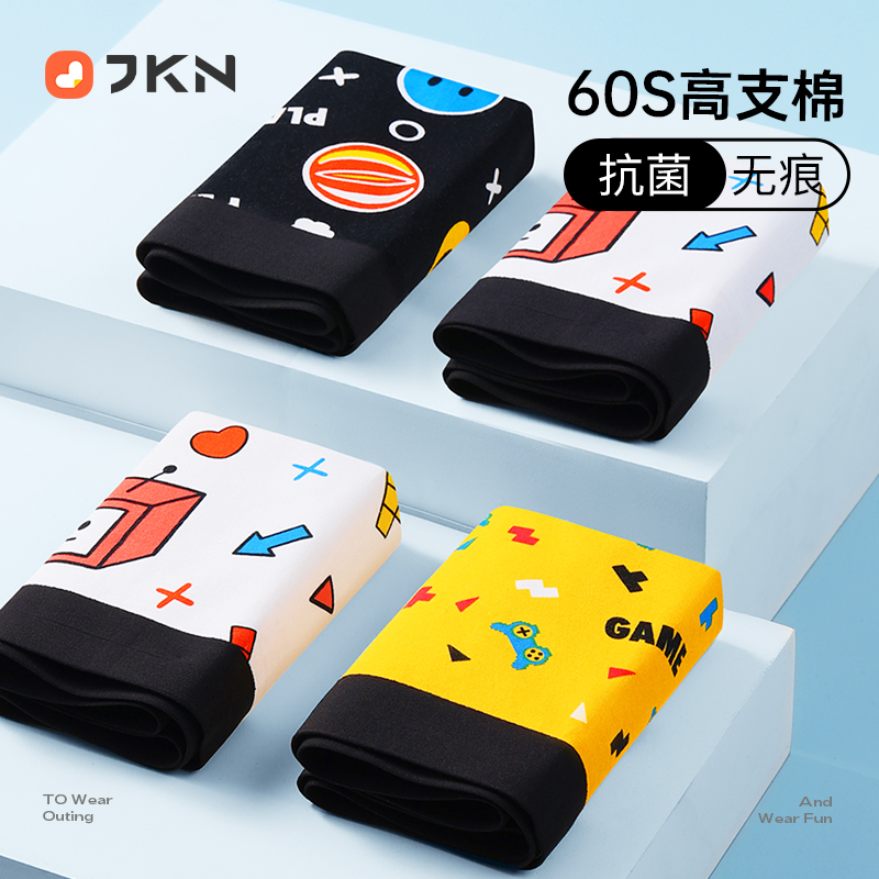 【产品名称:JKN男士内裤纯棉四角裤ins潮新款男生透气大码无痕抗菌平角短裤男】