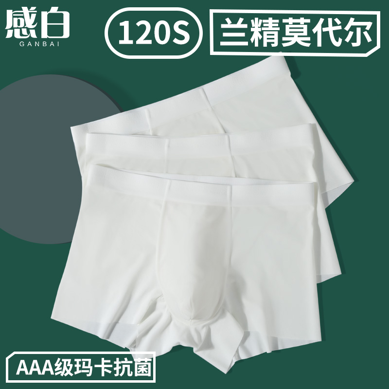 【产品名称:纯白色男士内裤120支兰精莫代尔浅色平角短裤抗菌冰丝无痕四角裤】