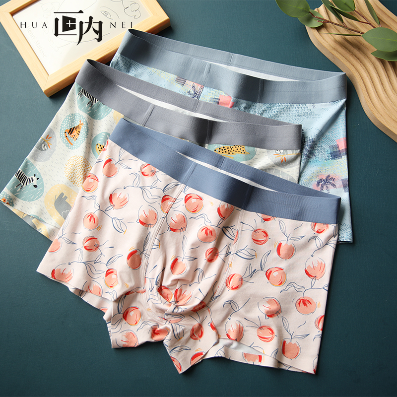 【产品名称:走潮流前端~画内3条内裤男莫代尔无痕个性卡通男士内裤中腰平角裤】