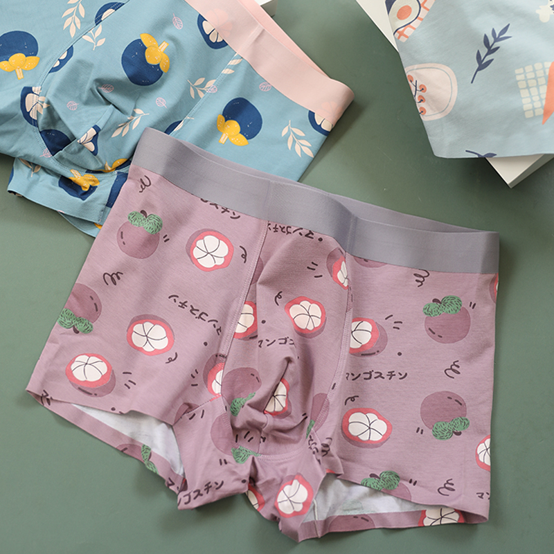 【产品名称:画内男士内裤四角无痕莫代尔卡通水果印花平角裤大码中腰无痕短裤】