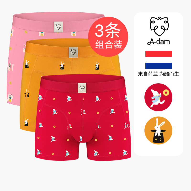 【产品名称:【好运3条装】Adam荷兰潮牌男士内裤纯棉平角四角本命年红色结婚】