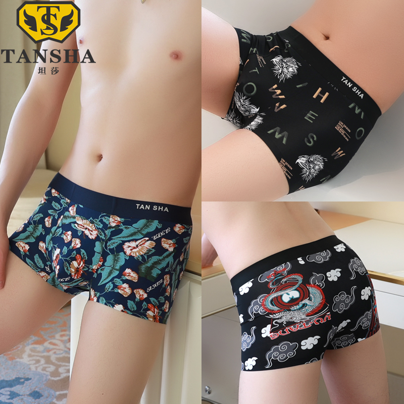 【产品名称:夏季薄款冰丝男士内裤男平角裤无痕抗菌透气潮流个性男生四角短裤】