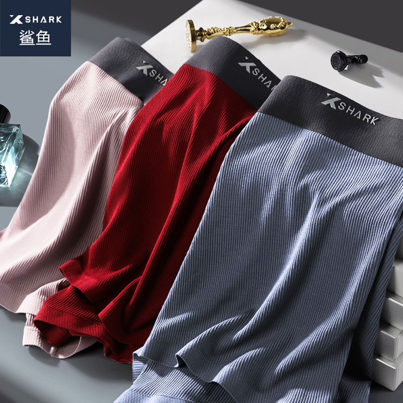 【产品名称:XSHARK鲨鱼男士内裤大码加肥加大肥佬夏季莫代尔螺纹红色平角短裤】