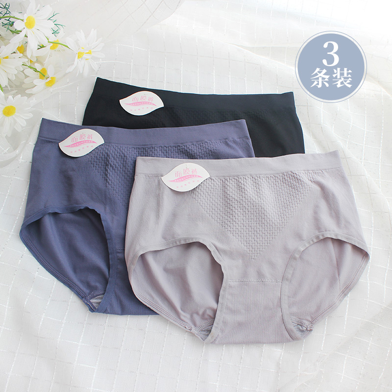 【产品名称:三条装大码女士无缝内裤胖mm面膜裤三角裤中高腰弹力好宽松棉裆】