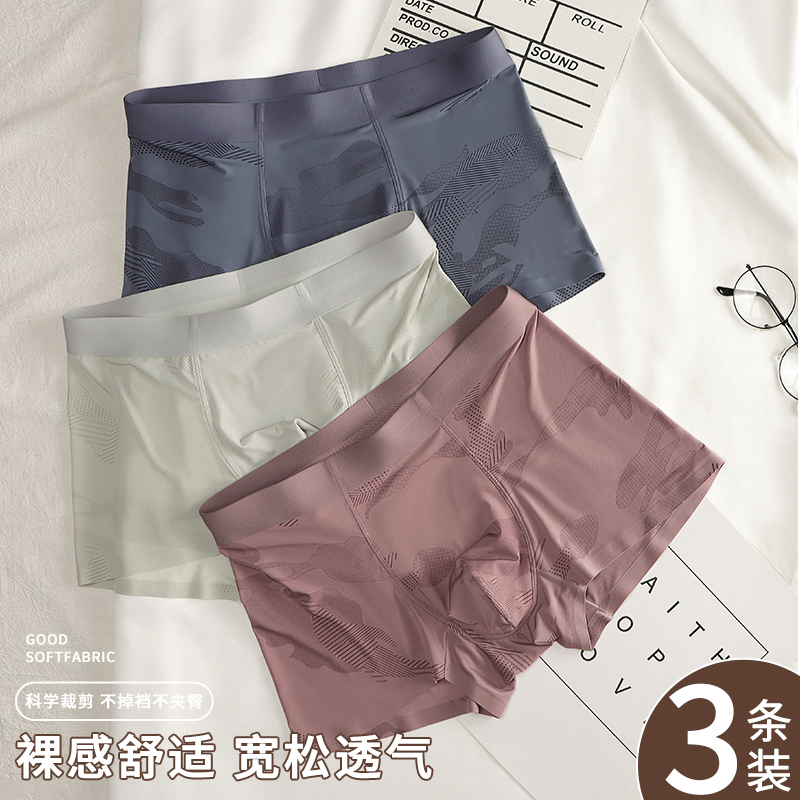 【产品名称:内裤男冰丝薄款无痕平角裤透气青少年男士内裤夏季舒适四角短裤衩】