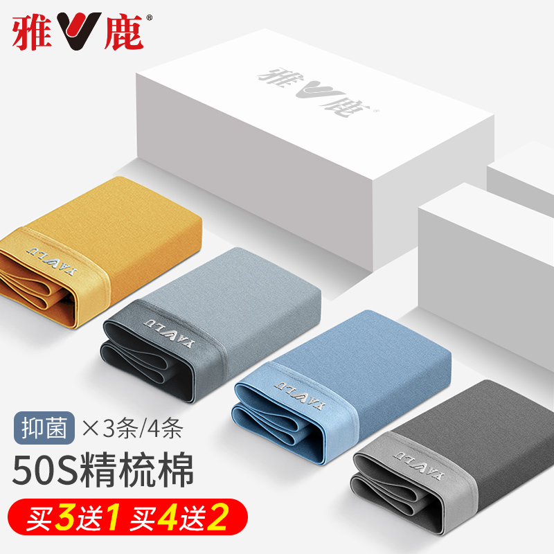 【产品名称:雅鹿男士内裤纯棉平角裤石墨烯抗菌裆裤衩男式无痕四角裤男生裤头】