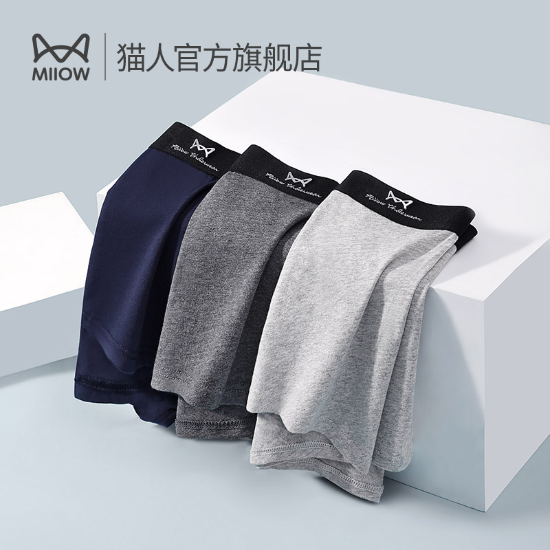 【产品名称:猫人男士内裤无痕纯棉透气平角裤头青少年宽松四角短裤男生裤衩】
