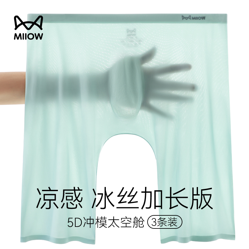 【产品名称:猫人5D冲模冰丝男士内裤运动加肥加大码长款防磨腿速干薄款四角裤】