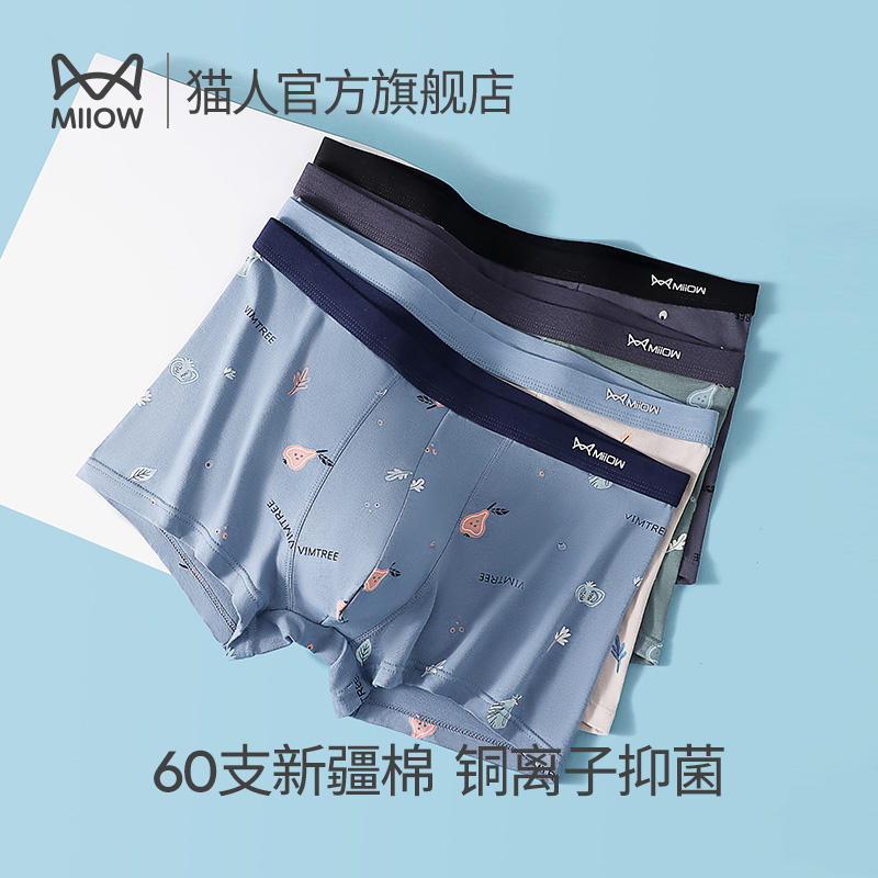 【产品名称:猫人男士内裤纯棉抗菌夏季薄款无痕透气青少年四角裤头平角裤男F2】