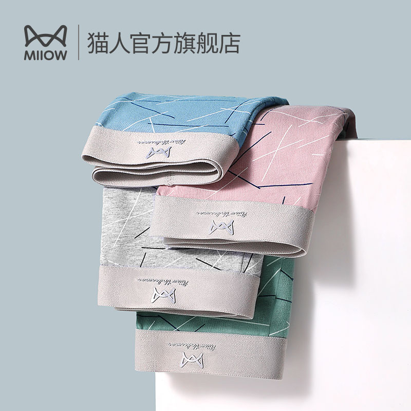 【产品名称:猫人60支纯棉男士内裤运动薄款无痕印花透气平角裤头抑菌四角短裤】
