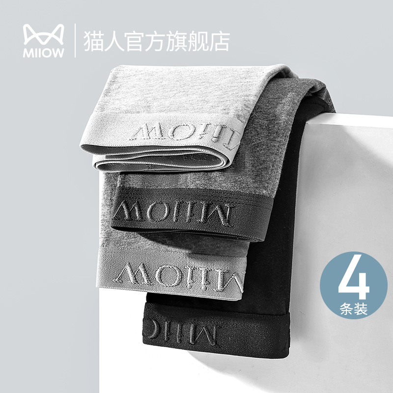 【产品名称:猫人60支新疆棉男士内裤透气运动抑菌男生平角裤头四角短裤衩纯棉】