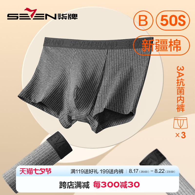 【产品名称:柒牌男士内裤平角新疆纯棉裤衩桑蚕丝抗菌男式条纹四角短裤3条装】