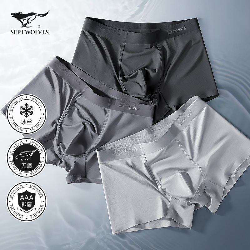 【产品名称:七匹狼男士内裤男生冰丝无痕平角夏季薄款凉感莫代尔男式四角短裤】