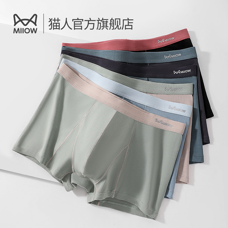 【产品名称:猫人60支纯棉男士内裤抑菌无痕春季平角裤男生透气薄款四角短裤衩】
