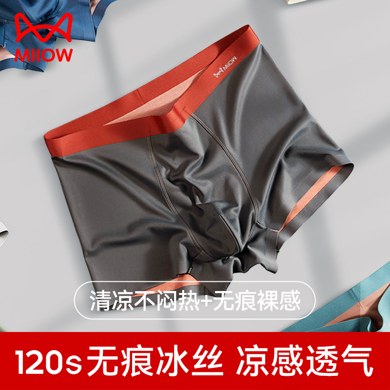 【产品名称:猫人冰丝男士内裤男生无痕夏季薄款双面零感抗菌短裤莫代尔四角裤】