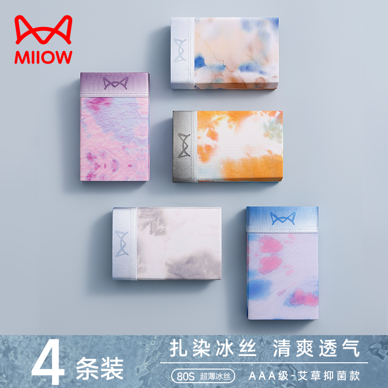 【产品名称:猫人内裤男生冰丝扎染夏季薄款四角裤男士印花无痕潮流短裤内裤男】