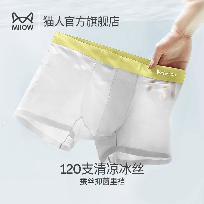 【产品名称:猫人120支冰丝男士内裤桑蚕丝抑菌夏季透气无痕平角裤头四角短裤】
