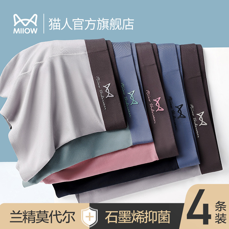 【产品名称:猫人内裤男款80支兰精莫代尔透气四角裤纯棉抑菌无痕男士平角裤衩】