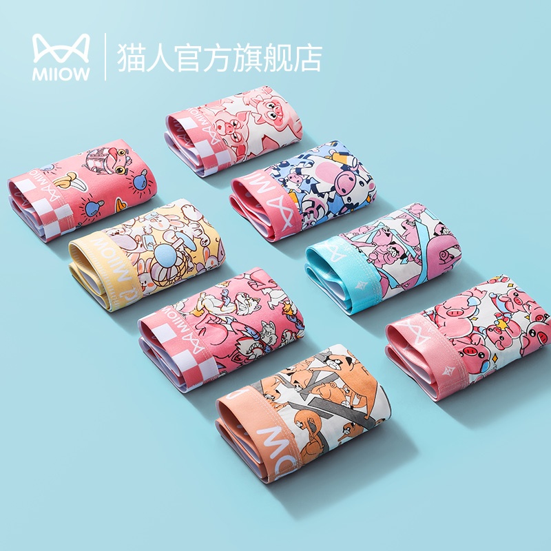 【产品名称:猫人潮牌男士内裤纯棉猛男粉色可爱卡通印花男生抗菌平角四角短裤】